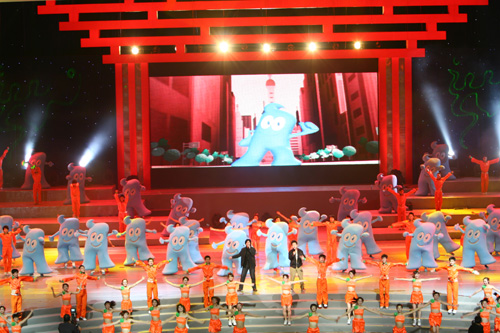 The mascot "Hai Bao" debuts at the unveiling gala at Shanghai Grand Stage