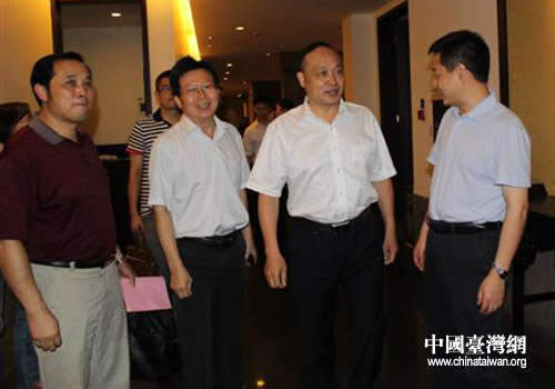 湖南省台办副厅级纪检员蒲祖泉与岳阳市领导交流。(图片来源:岳阳市台办)