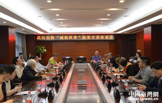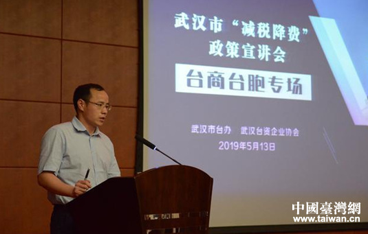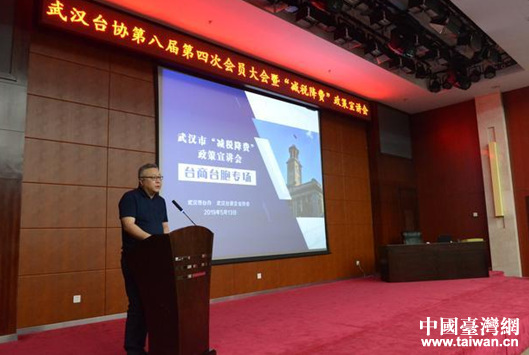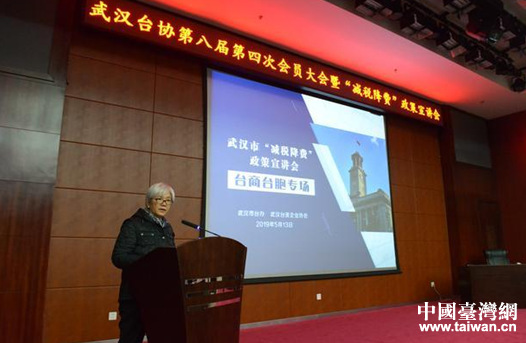 中国台湾网5月15日武汉讯 5月13日下午,武汉台资企业协会第八届第四次会员大会暨武汉台商台胞“减税降费”政策宣讲会举行。会议邀请市发改委、财政局、税务局、人社局相关处室负责人,为在汉台胞带来了最新政策解读,并与大家座谈交流。交谈中,台商王春吉先生激动地说:“政府为我们减税降费落到了实处,解决燃眉之急,企业负担减轻了,我们还想在武汉招兵买马,进一步扩大规模!”