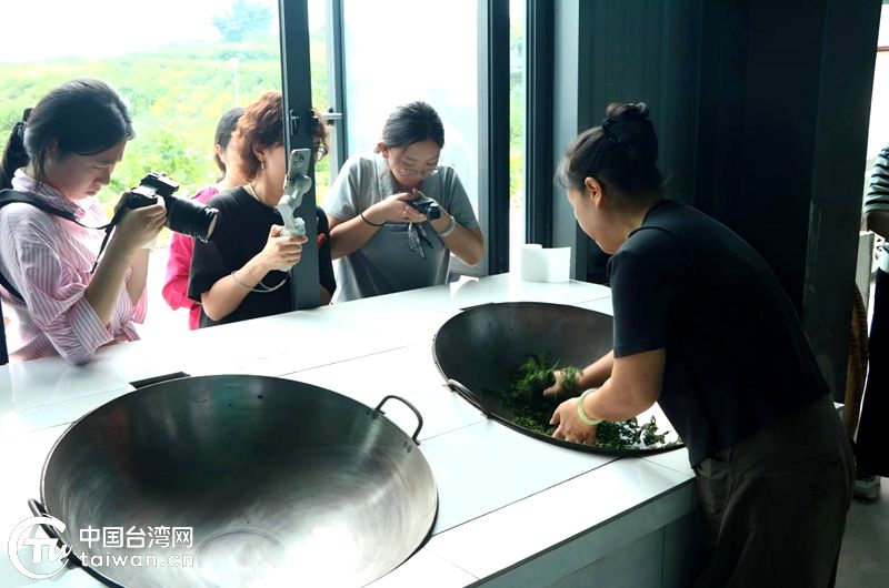最后一站的非遗桑茶技艺展示,更让两岸媒体和台湾青年啧啧赞叹。桑茶工坊内,传承人杨华边说边演示:“做桑茶讲究‘三杀三揉+低温烘焙’,一步都不能少。”大家围在一旁,有的观察翻炒的火候,有的尝试揉搓桑叶,亲身体验非遗工艺的细腻与严谨。当清甜茶香瞬间漫开,大家忍不住赞叹:“这茶比想象中更清爽。”随后的凉拌桑芽、桑叶凉粉、桑叶蒸饺等特色小吃更是让大家举筷不停,在味蕾的满足中,聊得愈发投机,这一缕缕清香仿佛成了拉近彼此的纽带。