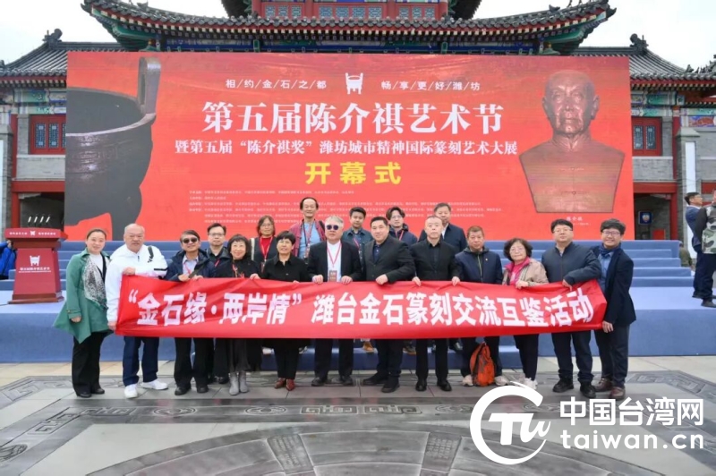 中国台湾网10月19日讯 10月18日,“金石缘·两岸情”潍台金石篆刻交流互鉴活动在潍坊市潍城区启动。本次活动由潍坊市委台办主办,潍坊鲁台经贸洽谈会服务中心、潍城区台办和潍坊市台胞台属联谊会共同承办,台湾中华道文化基金会理事长徐政佑,台湾篆刻家协会理事长黄尝铭及台湾篆刻家代表参会,潍坊市委台办副主任刘珂、潍城区委常委、办公室主任王帅出席活动并致辞。活动以金石篆刻为纽带,搭建两岸艺术对话与文化传承平台,深化同胞心灵契合,成为新时代两岸融合背景下血脉相连的文化寻根之旅,意义深远。