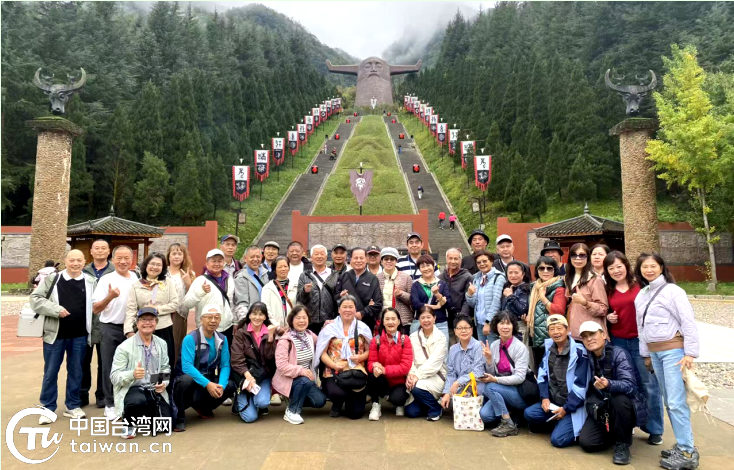 参访团在神农祭坛合影。(中国台湾网发)