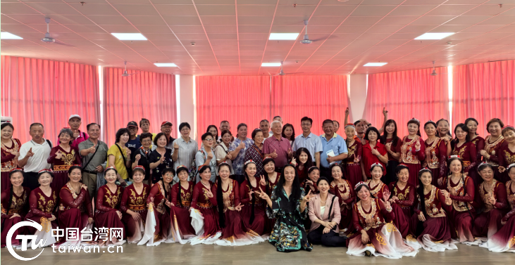 两岸老人共跳新疆舞后合影。(中国台湾网发)