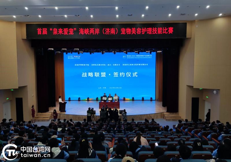 赛前举行了启动仪式。济南护理职业学院书记周敬在致辞中表示,希望通过比赛,两岸参赛选手能够赛出水平、赛出友谊,让比赛成为两岸青年携手并肩的起点。台青代表在发言中表示,期待通过比赛与大陆同行相互切磋、共同进步,为推动两岸宠物行业融合发展贡献一份力量。济南护理职业学院、名将宠美教育科技(北京)有限公司、亚太易和文化传媒有限公司在启动仪式上签订三方战略合作协议。济南市台办主任赵博与济南护理职业学院院长曹爱民共同为“泉来爱宠”鲁台产业联盟揭牌。