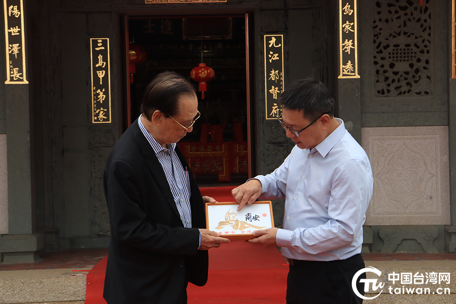 南安市台办主任赠送“来南安会成功”砖雕画(中国台湾网发)