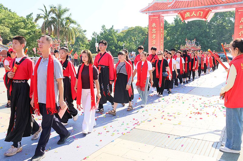 闽南传统“成人礼”:穿越千年,孝道薪火映照两岸。11月9日,诗山公园内古乐悠扬,50对年满16周岁的两岸及港澳、侨籍学子身着传统汉服,通过跨越“成人门”、“敬长辈”“敬师长”、集体宣誓、赠与礼包等仪式,在师长见证下完成了一场寓意深远的闽南传统“成人礼”。一位台籍学生家长动情表示:“这个仪式让孩子记住自己的根!不管是台湾还是大陆,我们都是中华儿女,这份文化血脉是相通的。”
