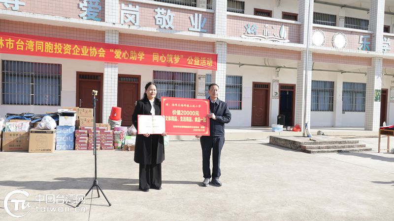 玉林市台协向上地小学捐赠教学物资等。(中国台湾网发)