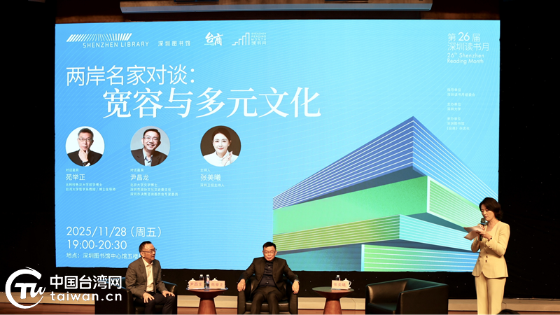 中国台湾网12月3日讯 11月28日晚,以“宽容与多元文化”为主题的两岸名家对谈活动在深圳图书馆中心馆举办。这是第26届深圳读书月“AI时代爱阅读”系列活动之一。