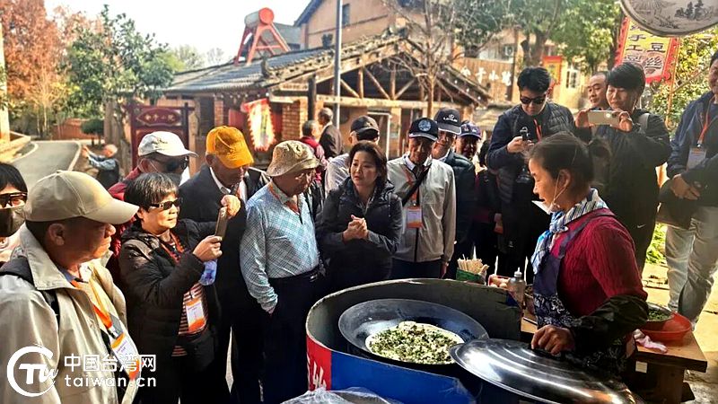 台湾苗栗县黄姓宗亲会一行在江夏区小朱湾品尝特色美食。(中国台湾网发)