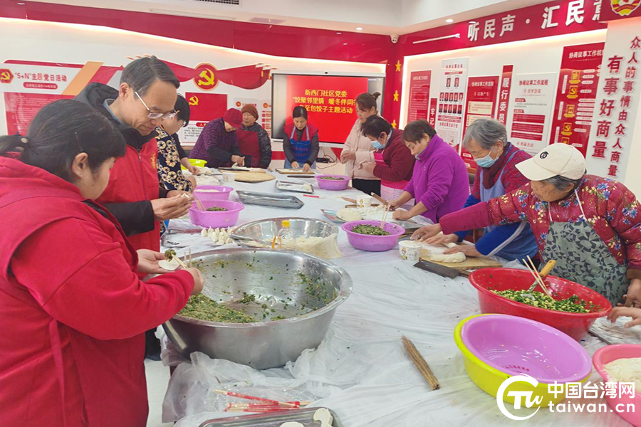 中国台湾网12月19日讯 冬至将近,为增进两岸同胞情谊,12月17日,开封市城乡一体化示范区台办在城西街道新西门社区组织台胞台属与社区居民一起开展冬至包饺子活动。