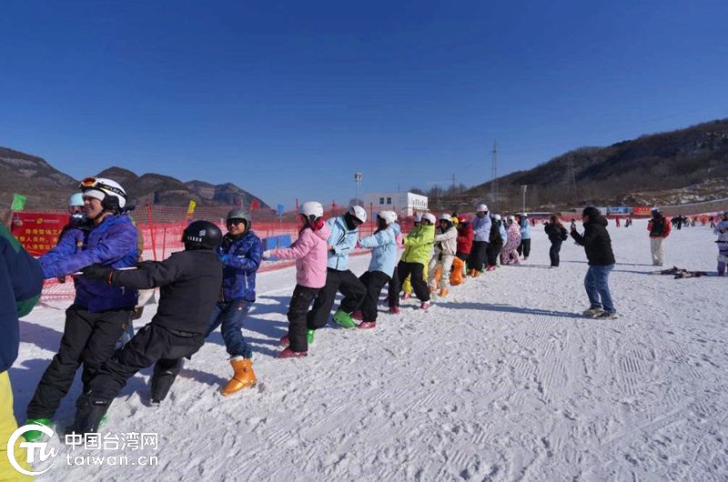 两岸青年在滑雪场组织拔河比赛。(中国台湾网发)
