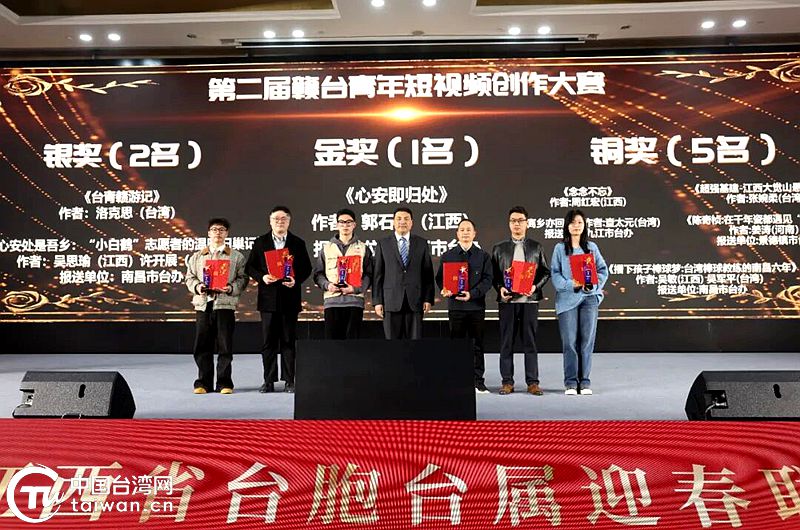 赣台荟·第二届赣台青年短视频创作大赛获奖代表合影。(中国台湾网发)