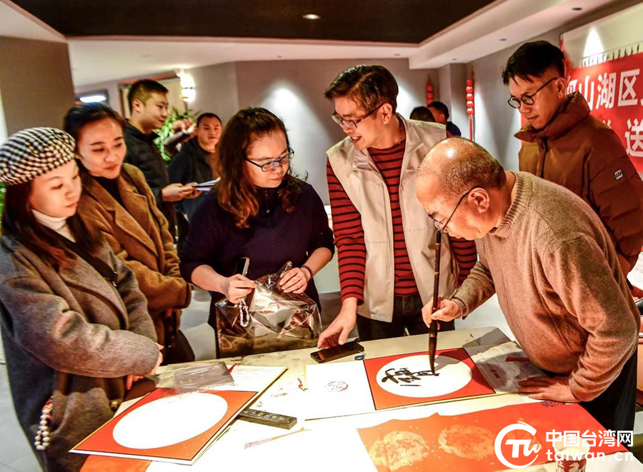 书法老师为台胞书写春联和“福”字等(中国台湾网发)