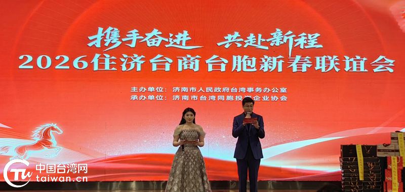 中国台湾网1月28日讯 1月24日,由济南市台办主办、济南市台协会承办的“携手奋进 共赴新程”2026住济台商台胞新春联谊会成功举办。山东省台办一级巡视员王清玉,济南市原副市长、市台协会常务副会长尹清忠,济南市台办主任赵博、副主任李学忠,济南台协会会长王克璋出席,200余位住济台商台胞参加活动。