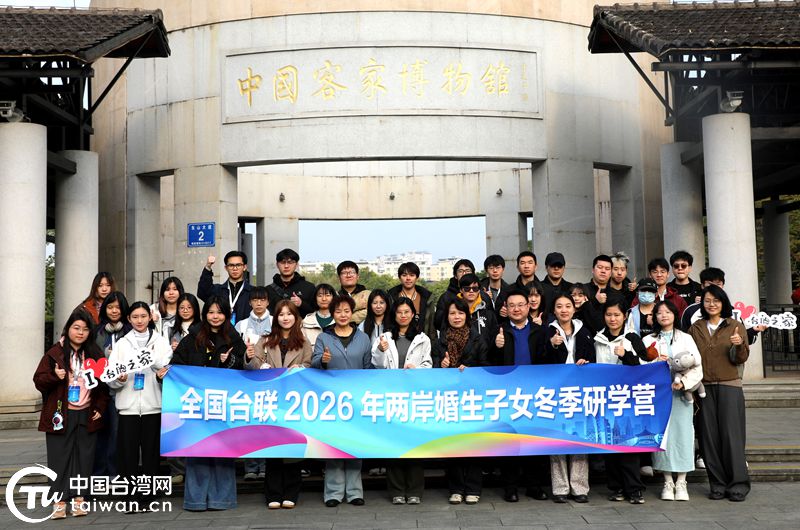 全国台联2026年两岸婚生子女冬季研学营一行在海峡两岸交流基地交流示范点——中国客家博物馆合影留念。(中国台湾网发)