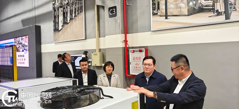 方涛一行参观信易电热机械有限公司智能化生产流程。(中国台湾网发)