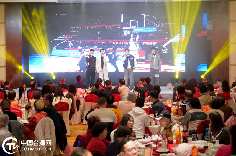 浙BA富阳队球员现场激情献唱。(中国台湾网发)