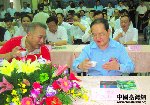江西省长鹿心社称赞阿里山茶叶色泽清亮,味道纯正。(图片来源:江西省台办)