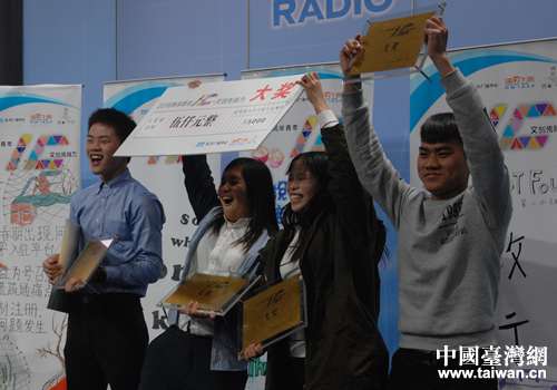 两岸青年学生混合组成的“五小”团队喜获大奖。(上海台办 葛凤章 摄)