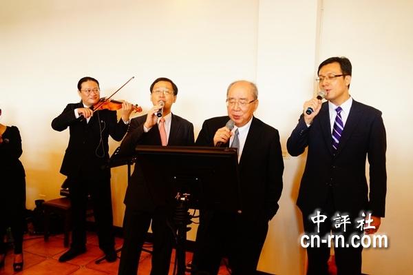 酒过三巡之后,拥有美妙歌声的吴伯雄,被主持人请上台唱歌。吴伯雄和2个儿子合唱《感恩的心》, 午宴气氛逐渐热络起来,山东省台办主任张雪燕也和山东省人民政府秘书长蒿峰高唱一曲,接着山东省长郭树清也上台唱了两首。