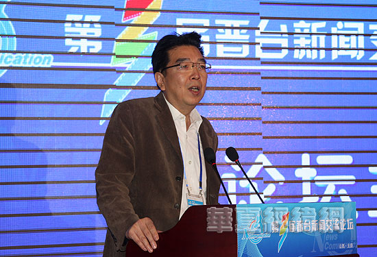 山西广播电视台副总编辑张敬民,在主论坛上做题为《肩承使命 融合发展》的演讲。(摄影:虞鹰)