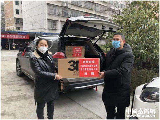 1月31日,怀化市台企台胞向一线工作人员捐献口罩。 (中国台湾网 发)