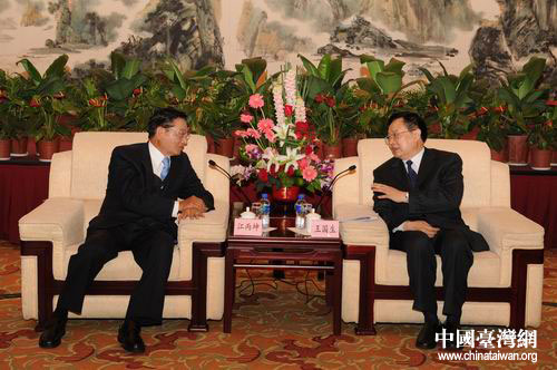18日中午王国生在武昌会见江丙坤一行。(陆胜 摄)