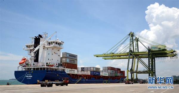 这是2015年4月17日拍摄的距离文莱首都斯里巴加湾29公里的摩拉港集装箱码头。记者 郑捷 摄