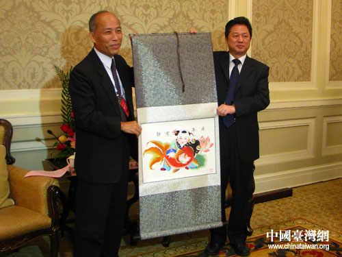 互赠礼物。(中国台湾网 李瑞艳 摄)