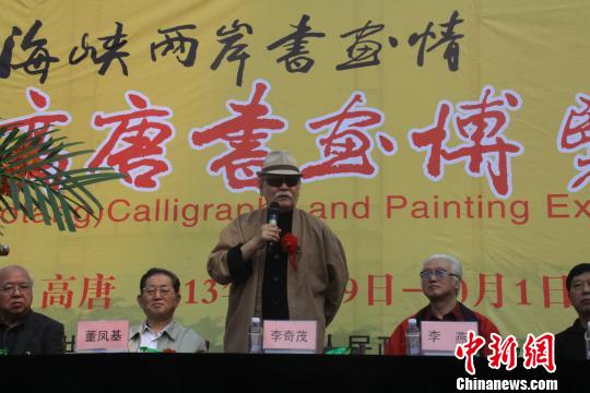 中新网高唐9月29日电(杨晓卫)“共建文化中国是目前海峡两岸最重要的事情。我希望以书画为桥,海峡两岸共同发展与时俱进的中华文化。”台湾著名画家、马英九艺术顾问李锡奇29日在山东高唐作上述表示。