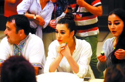 ▲ 下午排练,晚上演出,直到夜里11点,大家才吃上晚饭,而这个时候,古丽还没来得及卸妆。