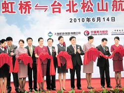 根据媒体的报道,6月14日虹桥──松山航线正式开通,大陆东航、国航、上航以及台湾的华航、长荣、复兴航空获准运营,每周共执飞28个往返班次。