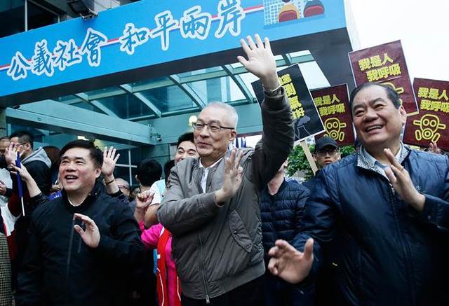 国民党元旦升旗吴敦义喊‘团结 再执政’ 结果旗子缠成一团飘不起来