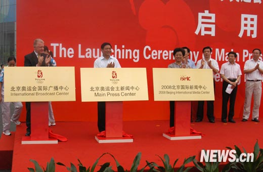 7月8日,北京奥运会主新闻中心(MPC)、国际广播中心(IBC)、2008北京国际新闻中心正式启用,图为启用仪式现场。新华网 杨理光 摄