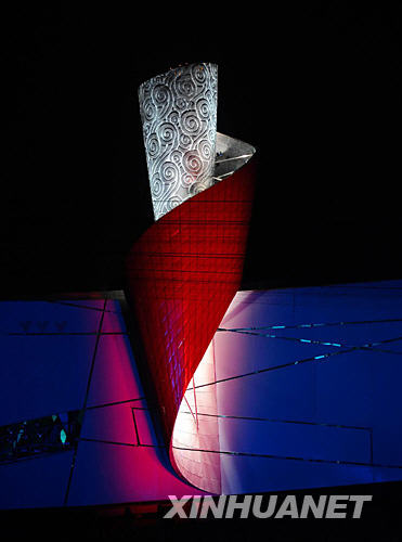这一创意同开幕式交相辉映。北京奥运会主火炬塔的圣火点燃,是以中国奥运英雄李宁在“鸟巢”顶端的碗边,以“空中飞人”的方式,奔跑在徐徐展开的画卷上。徐徐打开的是以“祥云”图案为背景的全球火炬传递的精彩画面。李宁手持火炬,在空中奔跑至北京、奔跑至“鸟巢”,点燃了“祥云”图案打造的主火炬塔。这一方式令人震撼。而圣火的熄灭同样源自这一灵感,充满着诗意。
