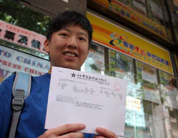 图:香港最后一批共6万张奥运马术门票12日正式开始预售。市民李女士成功订得门票后,心情兴奋。(图片来源:大公报)