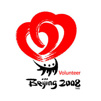 心心相扣的心形,象征志愿者与运动员及奥林匹克大家庭和所有宾客心连着心,用心服务、奉献爱心,为奥林匹克运动增添光彩。舞动的人形,展现了志愿者,奉献为乐的志愿者的精神。志愿者真挚的笑容、出色的服务、友善的行为将唤起每一位奥运会参与者的心灵共鸣。二级标志的设计,运用了中国独特的传统文化形式——中国书画艺术风格,与北京奥运会会徽“中国印?舞动的北京”相互映衬。