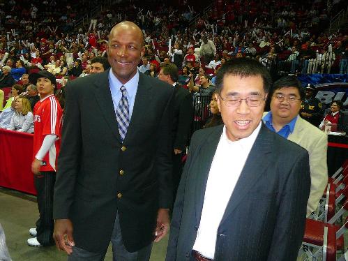 离开姚餐厅之后,王宁一行在《明桥体育》负责人的陪同下,来到丰田中心观看火箭队与森林狼之间的比赛,并在球场上会见了姚明和前年曾到中国访问过的原NBA巨星,火箭队“滑翔机”得雷克斯勒。“滑翔机”见到老朋友王宁后特别高兴,不断地用中文问候客人们“你好吗?”,一再提出要在休斯顿请王宁一行吃饭。由于次日12时就要飞离休斯顿前往芝加哥,王宁只好笑着表示“留在下次来休斯顿时再吃”,并欢迎“滑翔机”今年八月到北京去观看奥运会比赛。正坐在场边板凳上休息的姚明也与王宁部长热情握手表示欢迎。