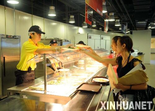 7月8日,记者们在主新闻中心(MPC)地下一层购买午餐。当日,北京2008年奥运会主新闻中心正式启用。 新华社记者罗晓光摄