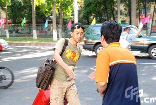 2008年6月16日,乌鲁木齐,昨日(6月15日)王学兵现身环球酒店火炬手的签到台,他将参加6月17日在乌鲁木齐站的火炬传递活动。