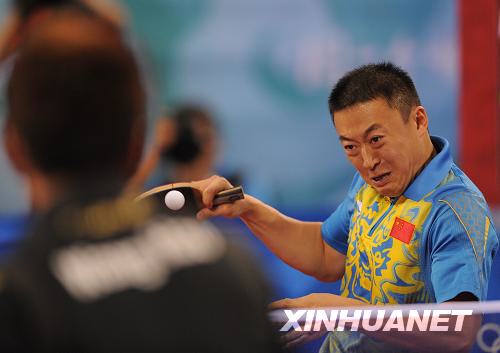 8月23日,中国选手马琳在比赛中。当日,马琳在北京奥运会乒乓球男子单打决赛中以4比1战胜队友王皓,获得金牌。 新华社记者 鲍菲菲 摄