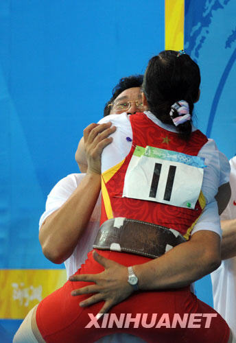 新华网快讯:8月9日,北京奥运会女子举重48公斤级决赛结束,中国选手陈燮霞以抓举95公斤、挺举113公斤,总成绩208公斤夺得金牌。这也是中国代表团在北京奥运会上获得的首枚金牌。并以抓举95公斤、挺举117公斤,总成绩212公斤打破奥运会总成绩纪录。