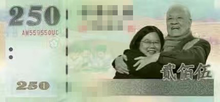 网友设计的“新”250元钞印上台湾地区领导人蔡英文和前台湾地区领导人李登辉,这象征……。(网络图)