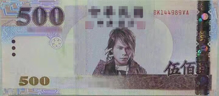 网友恶搞,将歌手伍佰(吴俊霖)的肖像放上500元钞票,表示“伍佰元就该放伍佰”。(图片来源:台湾《联合报》)