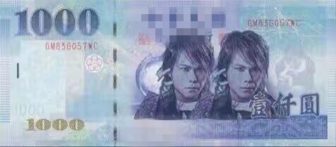 网友恶搞,将歌手伍佰(吴俊霖)的肖像重叠放置,两个伍佰正好等于一千元。(网络图)
