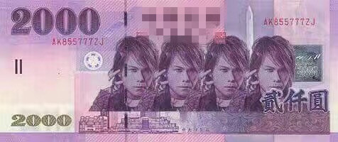 网友恶搞,将歌手伍佰(吴俊霖)的肖像放上“新”台币,四个伍佰等于两千。(网络图)