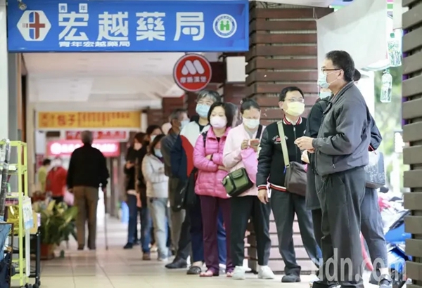 各地药局涌现排队人潮,不少人都深怕晚一步买不到。(图片来源:台湾《联合报》)