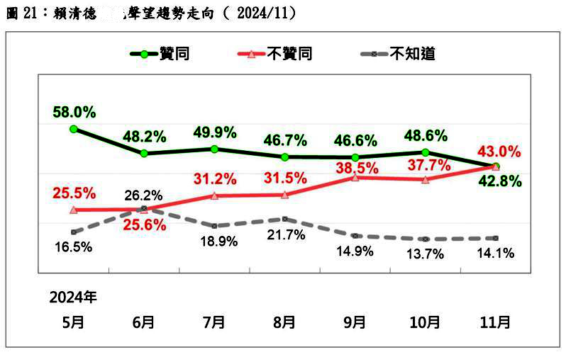 台湾民意基金会公布11月赖清德民调。(图片来源:“联合新闻网”)