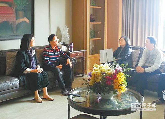民进党主席蔡英文25日到高雄探望陈水扁。(台媒翻摄自陈致中脸书)