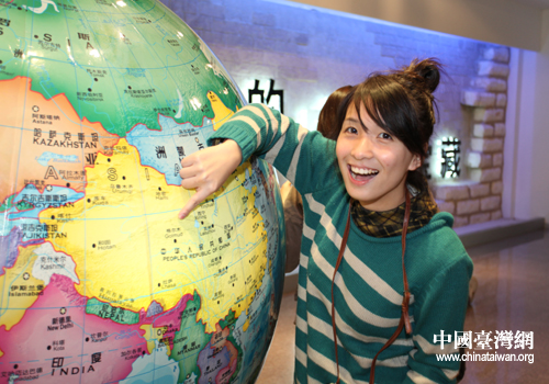 台湾学生在察尔汗盐湖展馆留影(图片来源:青海省台办)